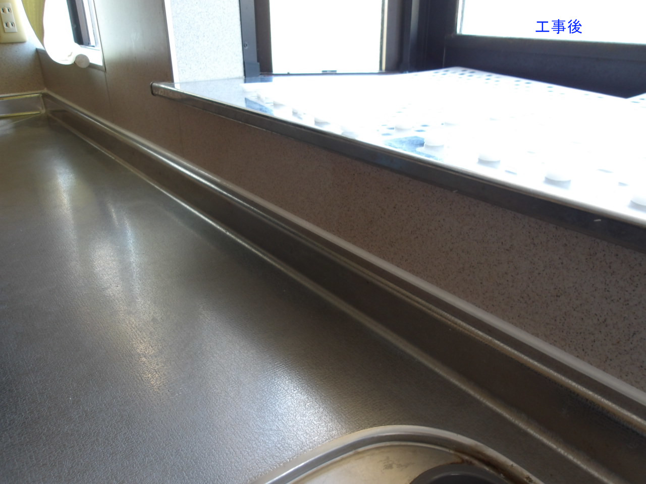 キッチンは既設のコーキングを撤去し、新たにコーキングを打設しました。