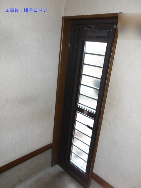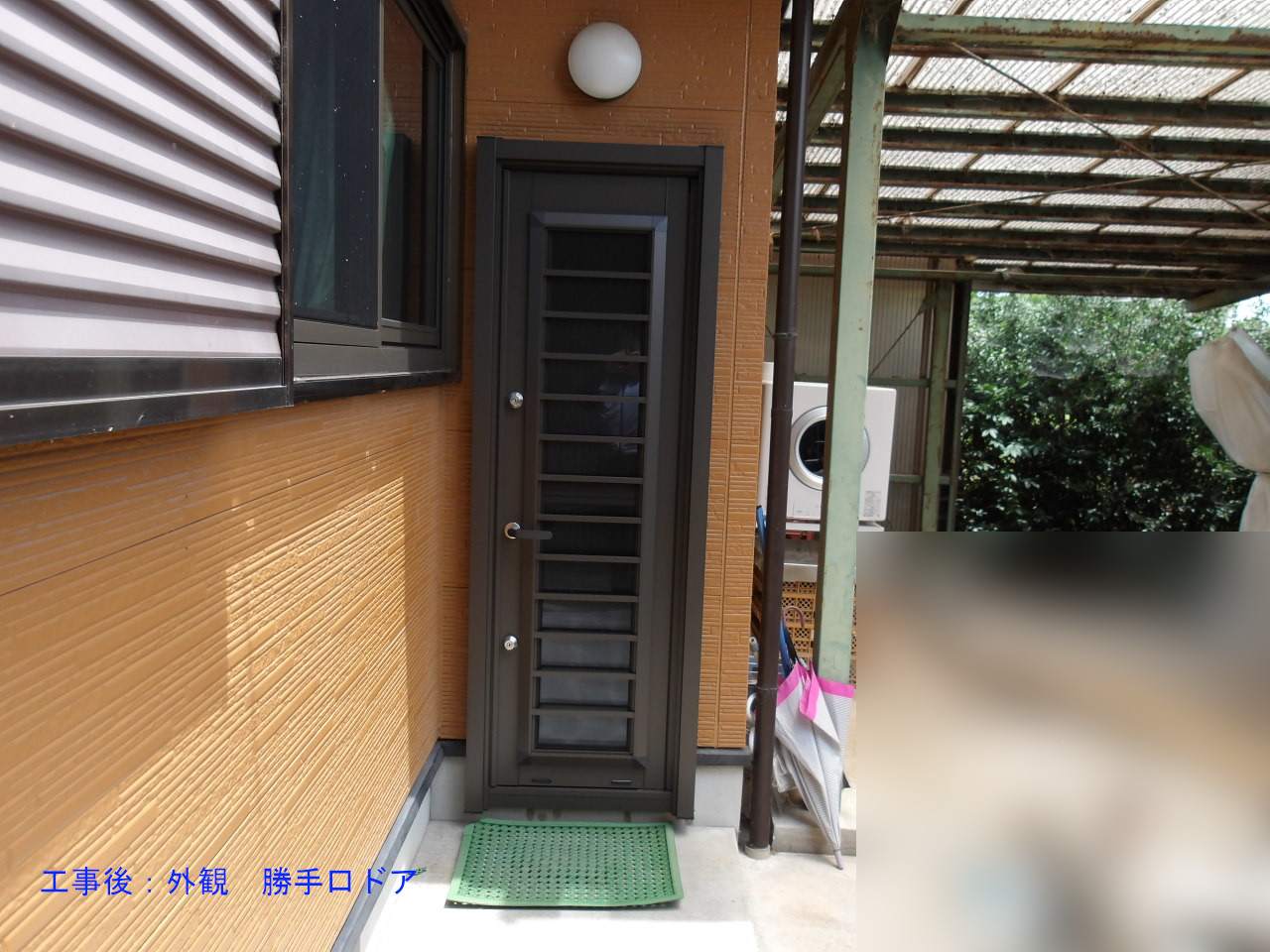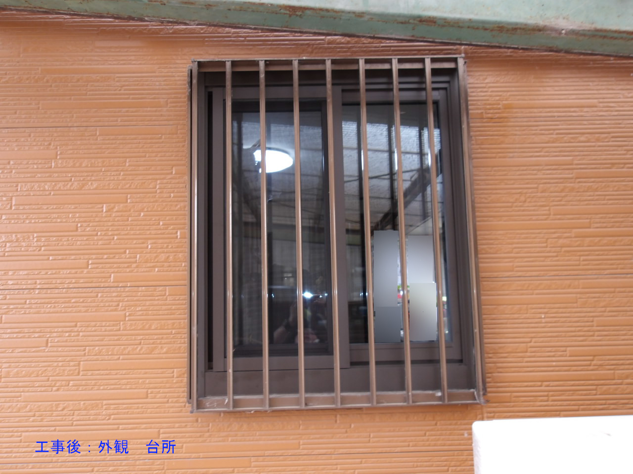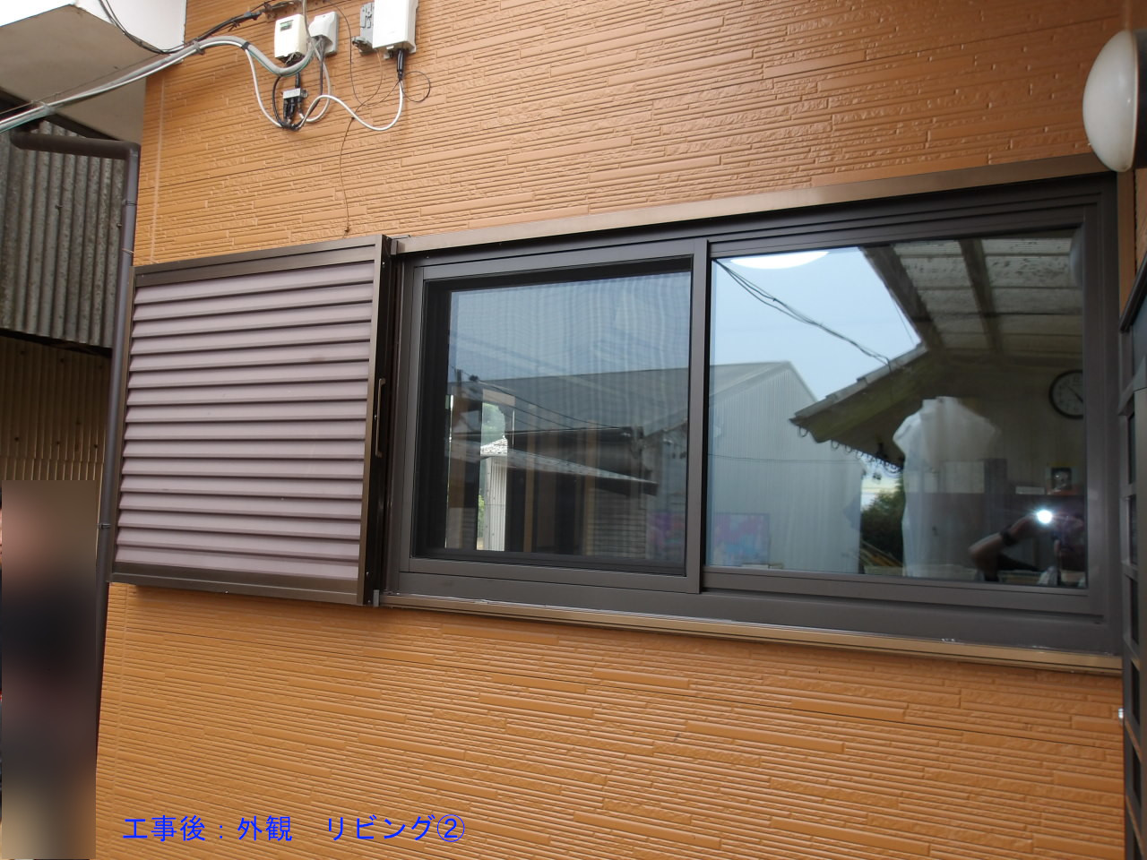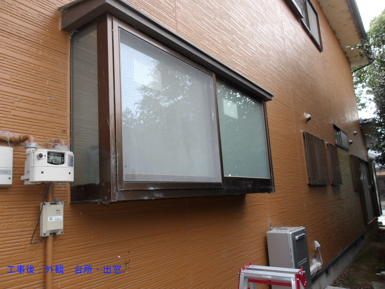 リビング2ヶ所、台所1ヶ所と勝手口ドアの合計4ヶ所をカバー工法で取り替え、台所の出窓はガラス交換を行いました。